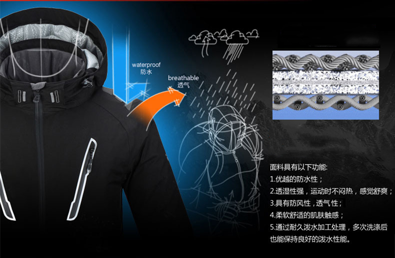 包括表面抗濕性、靜水壓力(包括織物靜水壓力和織物接縫處的靜水壓力)、透濕性等指標。