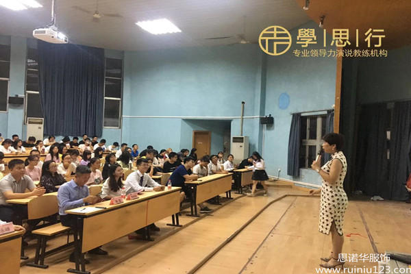 這一次在校園里舉辦的是關于一些企業家來演說自身的故事,主要是看他們的演說能力,引導大學生如何演講,包括演說的語言、內容,其中語言也分為了55%的肢體語言,38%的聲音語言,7%的文字語言,這也就是55387原則。肢體語言的原則就是自然協調,語速一般分為三個階段,中速:200字/分鐘,快速:280—300字/分鐘,慢速:100—120字/分鐘;語速還是要結合內容是抒情的還是激揚的來轉折語調。